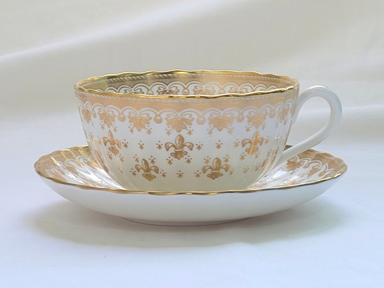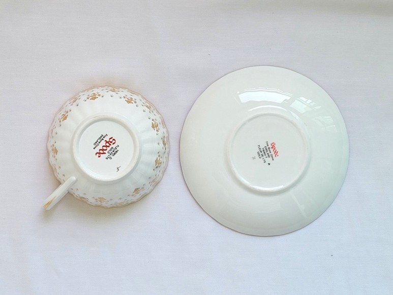 <판매완료>스포드 플뢰르 드 리스 골드 플랫잔 소서 듀오 세트 - 무료 배송, 홍차잔, 커피잔, 앤틱잔, 빈티지잔, 도자기 본차이나, 영국 찻잔, 접시, 그릇, 컵, 핸드드립, 홈카페