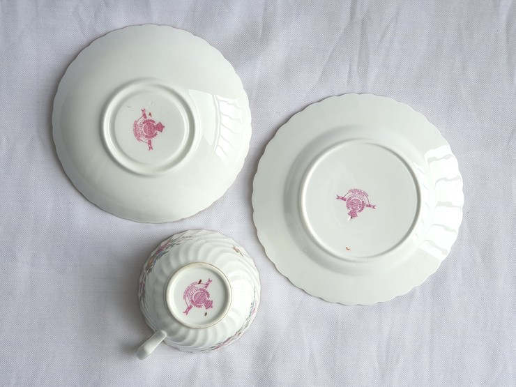 민튼 말로우 플랫잔 트리오 세트입니다 1938년 생산되어 1958년 단종된 제품입니다 칩 크랙 크레이징 없습...