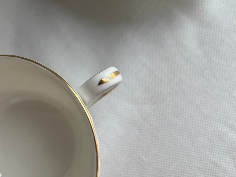 소서와 컵에 약간의 골드로스가 있으며 핸들에 골드가 끊어진 부분이 있습니다