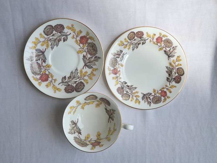 올해로 단종된 지 40년 된 웨지우드 리치필드 피오니잔 트리오 세트입니다 피오니잔 소서 브레드접시 3피스...