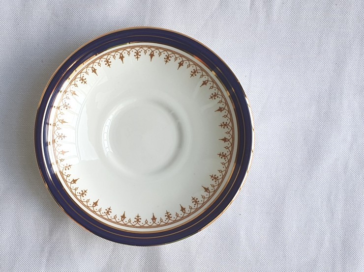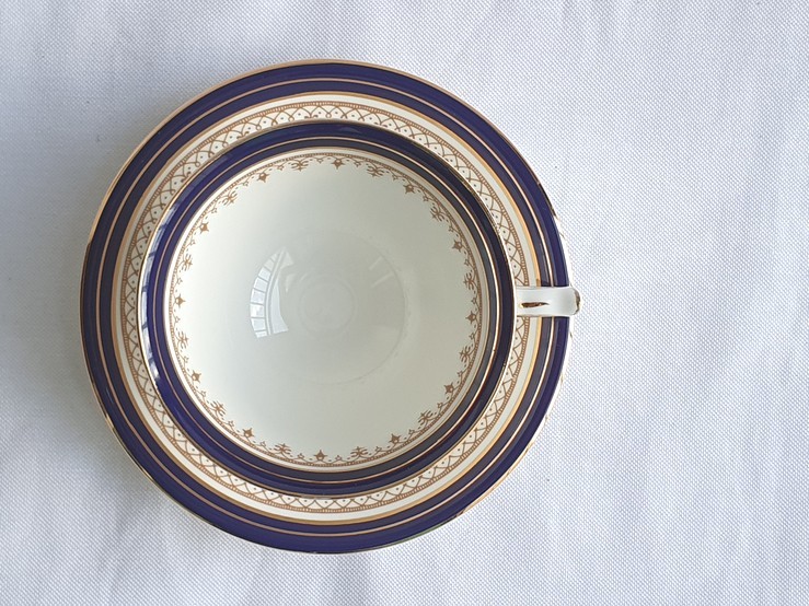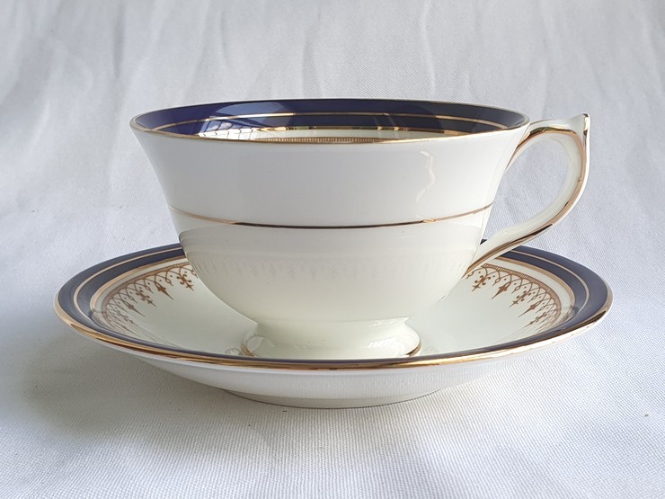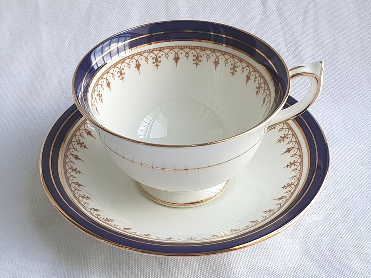 앤슬리의 레이턴 코발트 티잔 소서 듀오 세트입니다