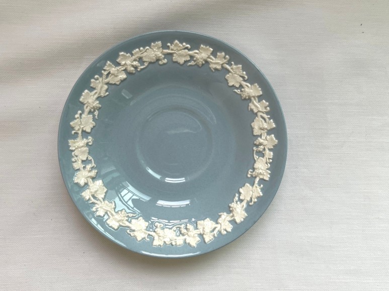 웨지우드 퀸즈웨어 크림온라벤더 플레인엣지 티잔 소서 듀오 세트입니다 칩 크랙 크레이징 없으며 부조 이...