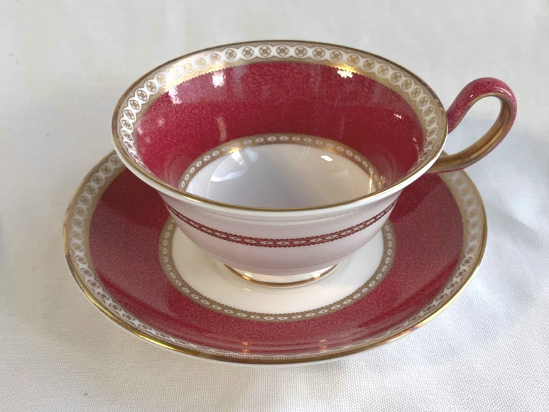 웨지우드 울란더 파우더 루비 피오니잔 소서 듀오 세트입니다 1927년 최초 생산되어 2008년까지 생산된 것...