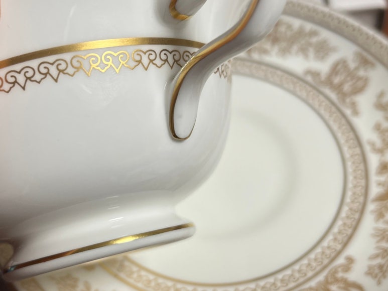 <판매완료><이슈품>웨지우드 콜럼비아 골드 피오니잔 소서 듀오 세트 - 무료배송, 홍차잔, 커피잔, 앤틱잔, 빈티지잔, 도자기 본차이나, 영국 찻잔, 접시, 그릇, 컵, 핸드드립, 홈카페