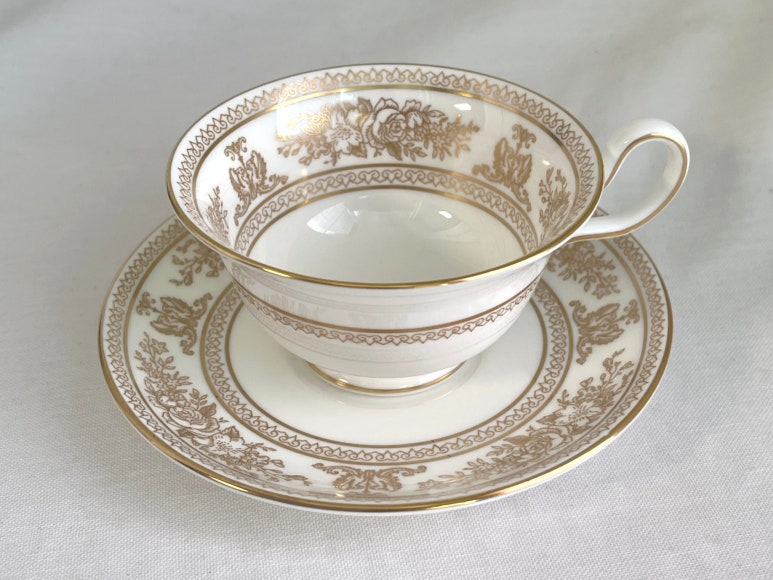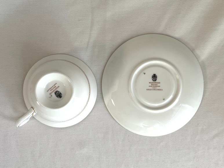 <판매완료><이슈품>웨지우드 콜럼비아 골드 피오니잔 소서 듀오 세트 - 무료배송, 홍차잔, 커피잔, 앤틱잔, 빈티지잔, 도자기 본차이나, 영국 찻잔, 접시, 그릇, 컵, 핸드드립, 홈카페
