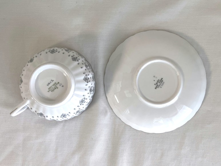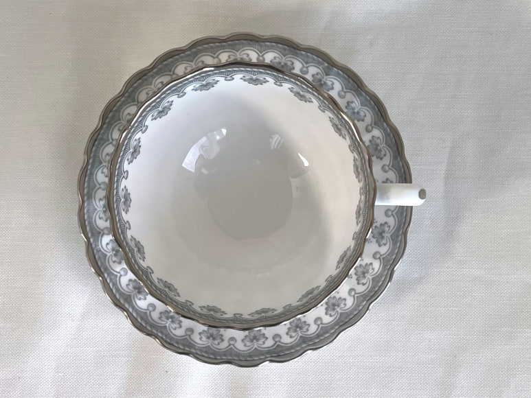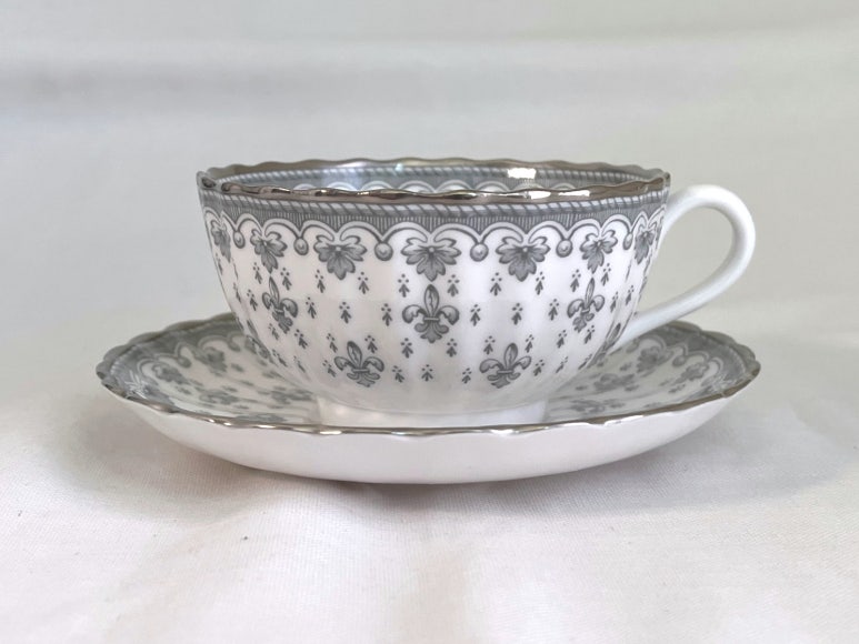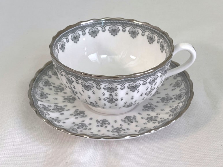 스포드 플뢰르 드 리스 그레이 티잔 소서 듀오 세트 - 무료배송, 홍차잔 커피잔, 앤틱잔, 빈티지