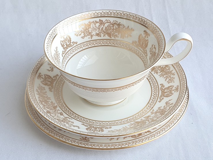 <판매완료><웨지우드 콜럼비아 골드 피오니잔 트리오 세트>무료배송 홍자찬 커피잔 앤틱잔 빈티지잔 도자기 본차이나 단종된 영국 찻잔 접시 그릇 컵 핸드드립 홈카페
