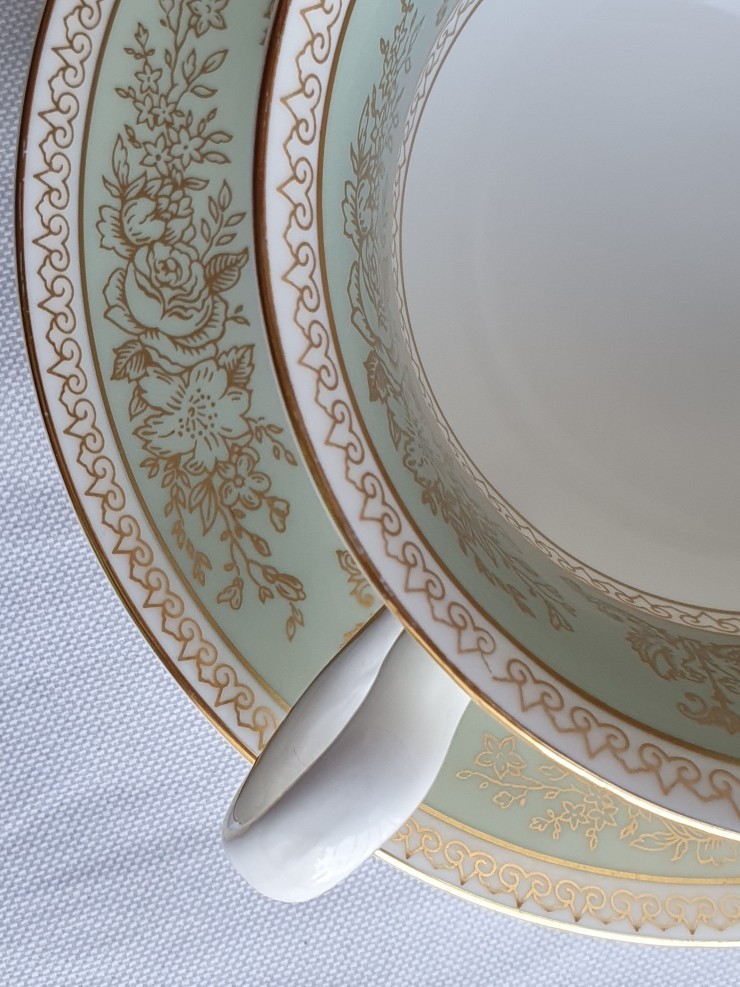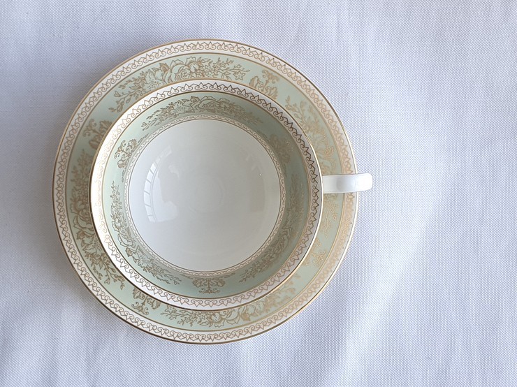 <판매완료><웨지우드 콜럼비아 세이지 그린 피오니잔 소서 듀오 세트>무료배송 홍자찬 커피잔 앤틱잔 빈티지잔 도자기 본차이나 단종된 영국 찻잔 접시 그릇 컵 핸드드립 홈카페