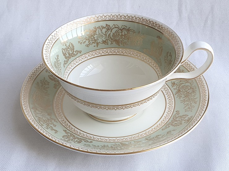 <웨지우드 콜럼비아 세이지 그린 피오니잔 듀오 세트>무료배송 홍차잔 커피잔 앤틱잔 빈티지잔