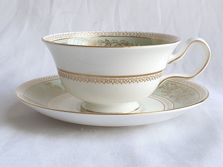 <웨지우드 콜럼비아 세이지 그린 피오니잔 듀오 세트>무료배송 홍차잔 커피잔 앤틱잔 빈티지잔