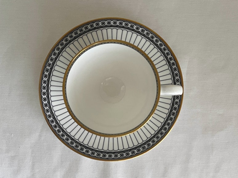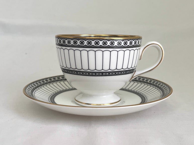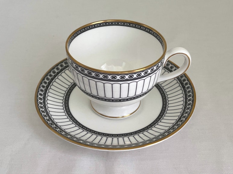 웨지우드 콜로네이드 블랙 리잔 소서 듀오 세트 - 빈티지 도자기 찻잔 & 소서 영국 본차이나 커피잔, 홍차잔 앤틱 감성 홈카페 아이템 클래식한 디자인과 우아한 골드 디테일 빈티지 접시, 그릇, 컵 무료배송으로 만나보세요