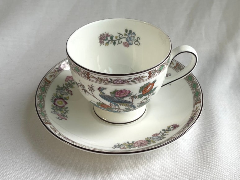 웨지우드 쿠타니 크레인 리잔 소서 듀오 세트 - 무료배송, 홈카페 분위기 연출, 앤틱 본차이나 홍차잔과 커피잔 찻잔 세트