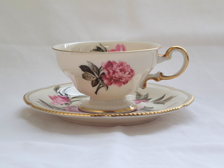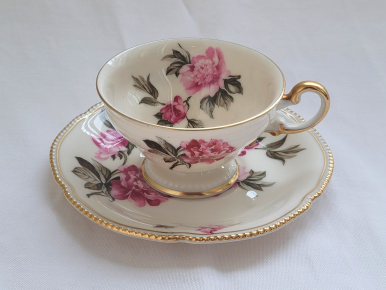 <판매완료>캐슬톤 피오니 티잔 소서 듀오 세트 - 무료 배송, 홍차잔, 커피잔, 앤틱잔, 빈티지잔, 도자기 본차이나, 미국 찻잔, 접시, 그릇, 컵, 핸드드립, 홈카페