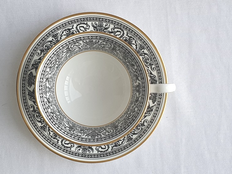 웨지우드 플로렌틴 블랙 피오니잔 소서 듀오 세트입니다 약 40년 정도 생산되다가 90년대 말에 단종된 제품...