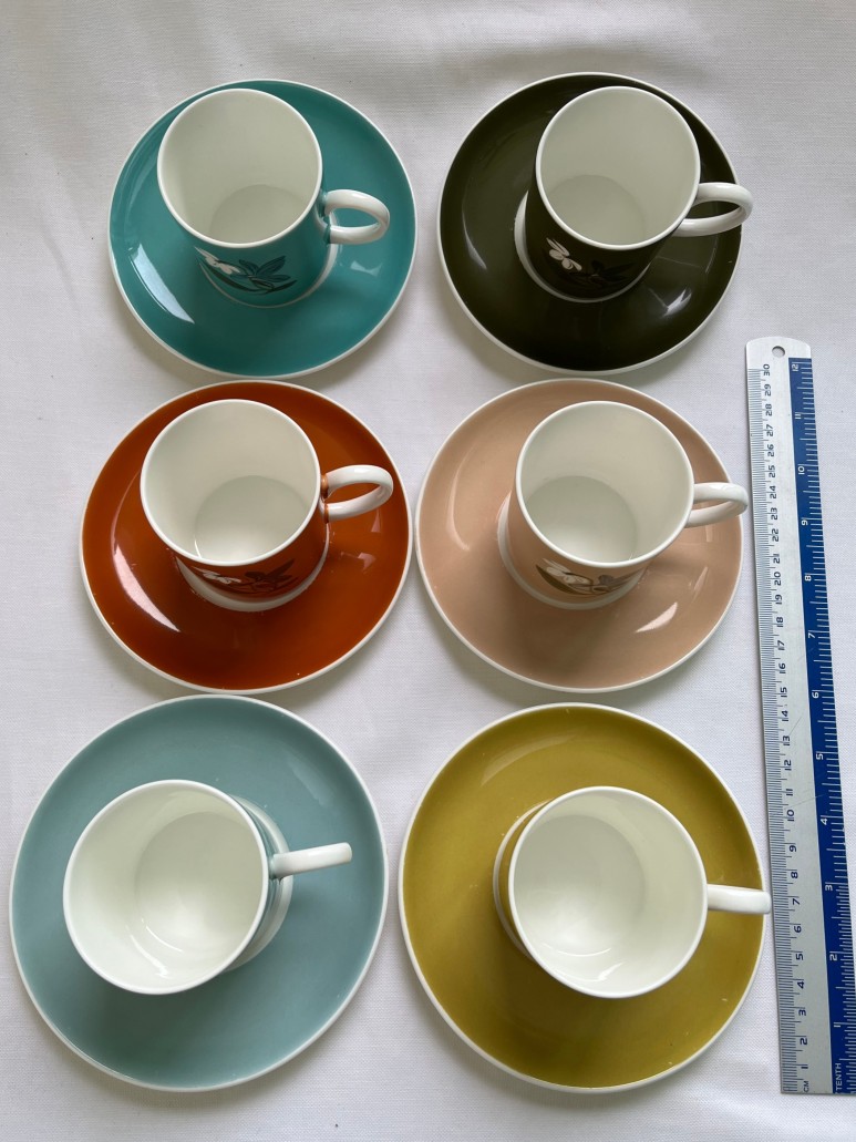 웨지우드의 수지쿠퍼 디자인 커피잔소서 세트입니다 70년대, 80년대 동안 판매된 제품으로 알려져 있습니다...