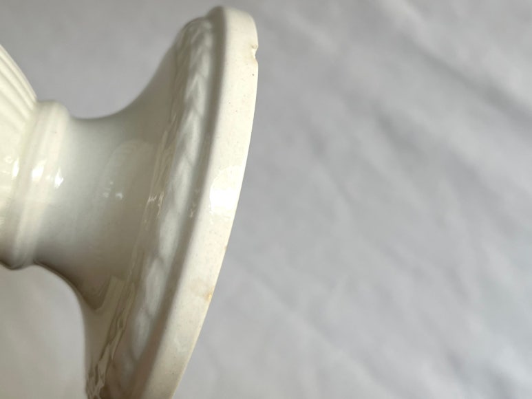 웨지우드의 퀸즈웨어 라벤더 온 크림은 1957년부터 1983년까지 생산된 영국 도자기 시리즈로, 크림색 바탕에 라벤더 블루 색상의 포도와 덩굴 무늬가 양각으로 장식된 것이 특징입니다. 이 디자인은 포도밭의 우아함을 테이블웨어에 담아낸 클래식한 스타일로, 평평한 가장자리와 조개껍질 모양의 가장자리 두 가지 버전으로 제작되었습니다. 퀸즈웨어는 원래 18세기 후반 조시아 웨지우드가 개발한 크림웨어의 일종으로, 당시 영국 왕실에 납품되며 '퀸즈웨어'라는 이름을 얻었습니다. '라벤더 온 크림' 시리즈는 현재 단종되었지만, 그 우아한 디자인과 역사적 가치로 인해 앤틱 및 빈티지 수집가들 사이에서 여전히 인기가 높습니다
