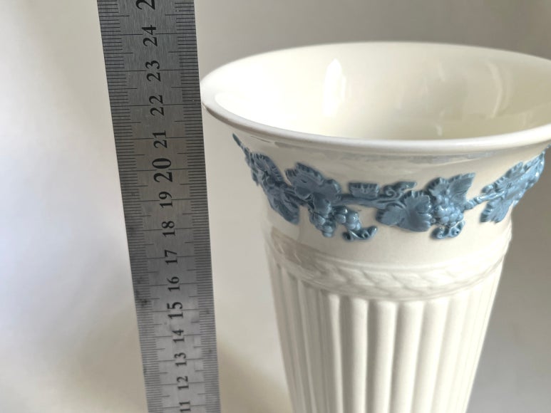 웨지우드의 퀸즈웨어 라벤더온크림 미디엄 사이즈 화병입니다 높이 22cm 정도입니다 크랙 크레이징 없으며 ...