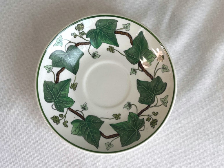 웨지우드(Wedgwood)의 '나폴레옹 아이비(Napoleon Ivy)'는 1815년 나폴레옹 보나파르트가 세인트헬레나 섬에 유배되었을 때 사용한 것으로 알려진 테이블웨어 패턴입니다. 이 디자인은 크림색 바탕에 사실적으로 묘사된 초록색 아이비 잎과 금색 테두리가 특징이며, 웨지우드의 퀸즈웨어(Queensware) 라인으로 제작되었습니다. 1965년, 나폴레옹의 유배 150주년을 기념하여 이 패턴이 재출시되었고, 이후 2003년에 단종되었습니다. 현재 '나폴레옹 아이비'는 빈티지 수집가들 사이에서 높은 인기를 끌며, 다양한 형태의 테이블웨어로 구성되어 있습니다.