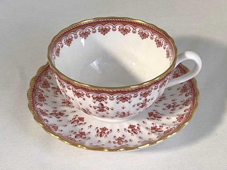 스포드 플뢰르 드 리스 레드 티잔 소서 듀오 세트 - 무료배송, 홍차잔 커피잔, 앤틱잔, 빈티지잔,