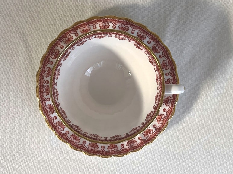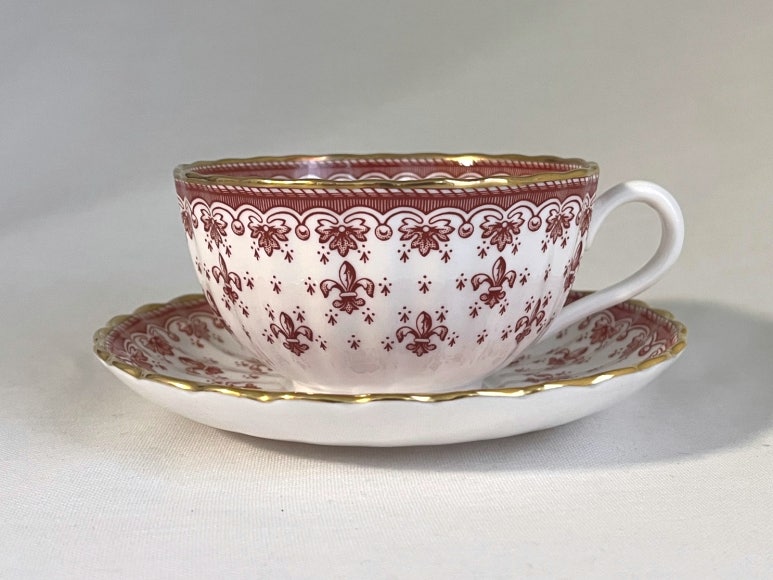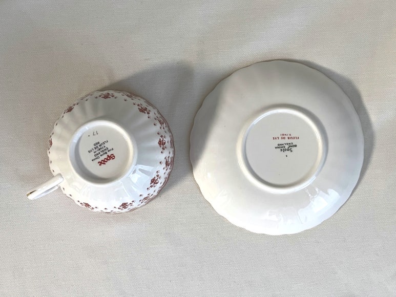 <판매완료>스포드 플뢰르 드 리스 레드 티잔 소서 듀오 세트 - 무료배송, 홍차잔 커피잔, 앤틱잔, 빈티지잔, 도자기 본차이나, 영국 찻잔, 접시, 그릇, 컵, 핸드드립, 홈카페