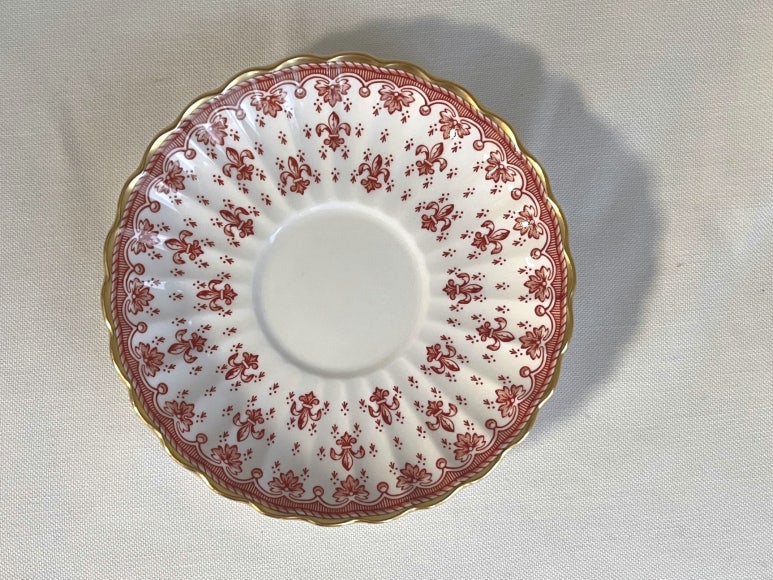 스포드 플뢰르 드 리스 레드 티잔 소서 듀오 세트입니다 50년대부터 생산되기 시작하여 70년대에 단종된 것...
