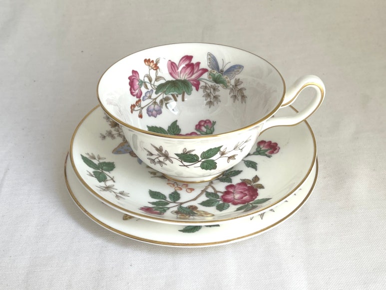 웨지우드의 찬우드 시리즈는 1951년부터 1987년까지 생산된 본차이나 테이블웨어 컬렉션으로, 현재는 단종되어 빈티지 수집가들 사이에서 인기가 높습니다. 이 시리즈는 섬세한 꽃과 나비 문양, 부드러운 표면, 그리고 금색 테두리가 특징이며, 고급스러운 영국식 티타임 분위기를 연출합니다. 특히 피오니 형태의 컵은 우아한 곡선미로 많은 사랑을 받았습니다. 현재는 생산이 중단되어 희소성이 높아졌으며, 상태가 좋은 제품은 수집가들 사이에서 높은 가치를 지닙니다.