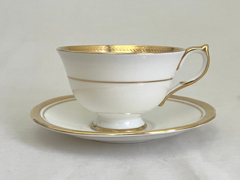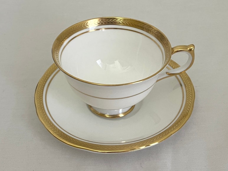 앤슬리의 엘리자베스 패턴은 1985년부터 2015년까지 영국에서 생산된 고급 본차이나 테이블웨어 시리즈입니다. 이 패턴은 부드러운 백색 도자기 바탕에 금박 월계수 장식과 섬세한 펜 라인으로 장식되어 있으며, 우아하고 클래식한 디자인으로 많은 사랑을 받았습니다. 생산이 중단된 이후에도 앤틱 및 빈티지 수집가들 사이에서 높은 인기를 유지하고 있으며, 특히 찻잔과 소서 세트는 홈카페와 테이블 스타일링에 적합한 아이템으로 평가받고 있습니다. 현재도 다양한 온라인 플랫폼에서 이 패턴의 제품을 찾아볼 수 있습니다.