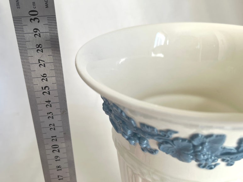 웨지우드의 퀸즈웨어 라벤더온크림 자이언트 트럼펫 화병 베이스입니다 높이 27.5cm 정도입니다 크랙 크레...