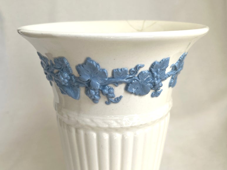 웨지우드의 퀸즈웨어 라벤더온크림 자이언트 트럼펫 화병 베이스입니다 높이 27.3cm 정도입니다 부조 이탈 ...