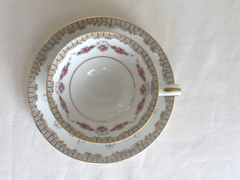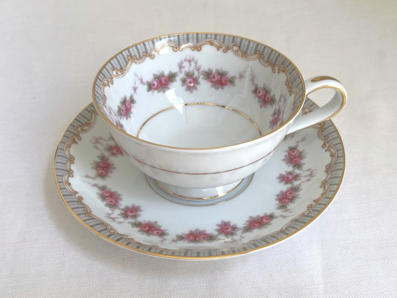 노리다케의 릿지우드 패턴은 1951년부터 1961년까지 일본에서 생산된 본차이나 테이블웨어 시리즈로, 현재는 단종된 빈티지 라인입니다. 이 패턴은 회색과 황갈색 테두리에 핑크빛 장미 스와그가 장식되어 있으며, 금장 트림으로 마감되어 고급스러운 분위기를 자아냅니다 . 전체적으로 우아하고 섬세한 디자인이 특징이며, 찻잔과 소서, 디너 플레이트, 샐러드 플레이트 등 다양한 구성으로 출시되었습니다. 현재는 수집가들 사이에서 희소성과 디자인 가치로 인해 높은 평가를 받고 있으며, 상태가 양호한 제품은 실사용뿐만 아니라 홈카페 연출용으로도 인기가 많습니다.
