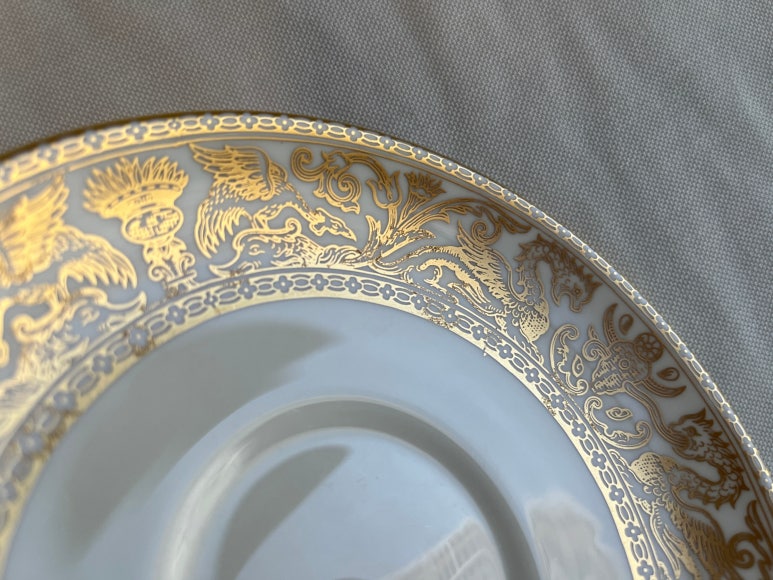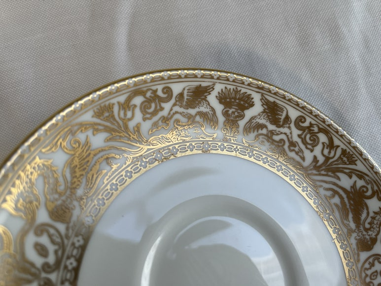 웨지우드 플로렌틴 골드 피오니잔 소서 듀오 세트입니다 1961년부터 1986년까지 생산되다가 단종된 제품입...