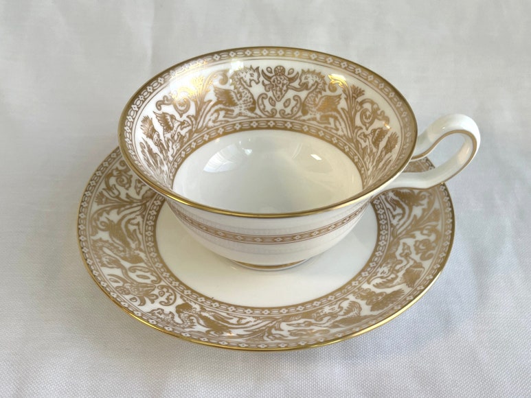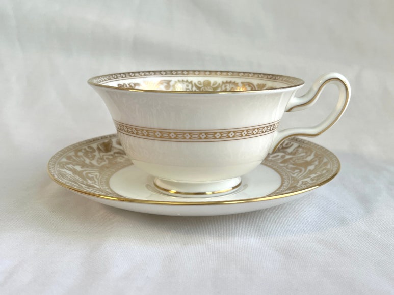 <판매완료><이슈품>웨지우드 플로렌틴 골드 피오니잔 소서 듀오 세트 - 무료배송, 홍차잔, 커피잔, 앤틱잔, 빈티지잔, 도자기 본차이나, 영국찻잔, 접시, 그릇, 컵, 핸드드립, 홈카페