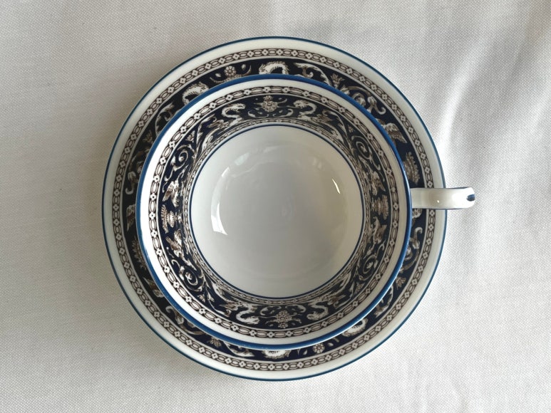 웨지우드 플로렌틴 다크블루 피오니잔 소서 듀오 세트 - 무료배송, 홍차잔, 커피잔, 앤틱잔, 빈티